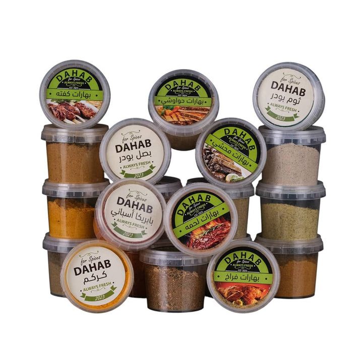 • Pepper - Cumin - Chili - Paprika - Curry - Turmeric - Coriander - Garlic Powder - Onion Powder - 7 Spices.