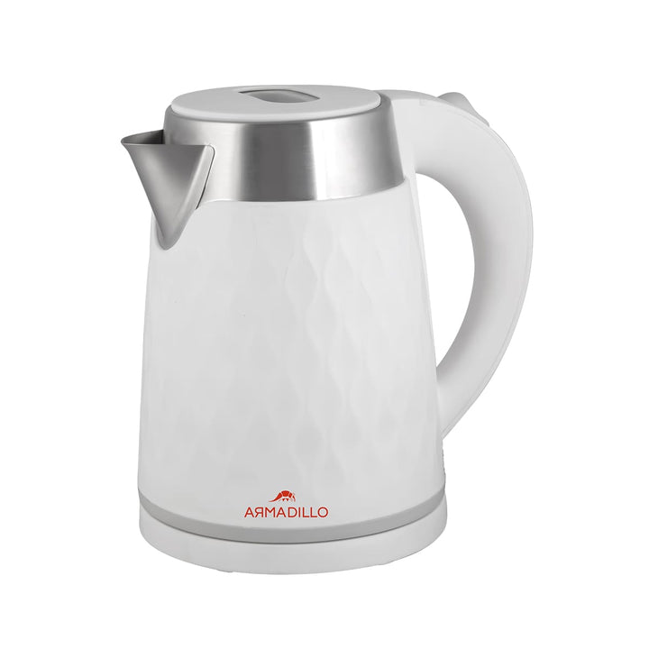 • Armadillo Double Plastic Kettle - Stainless Steel Interior, 1.7 Liter, 1500 Watts, White: