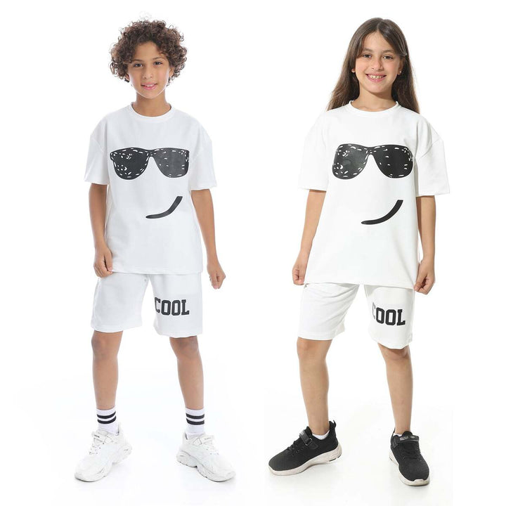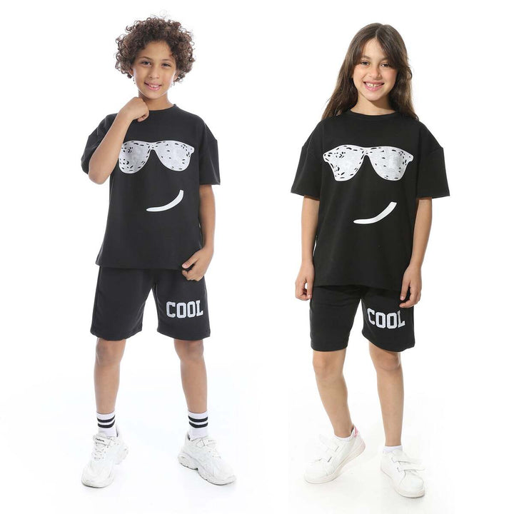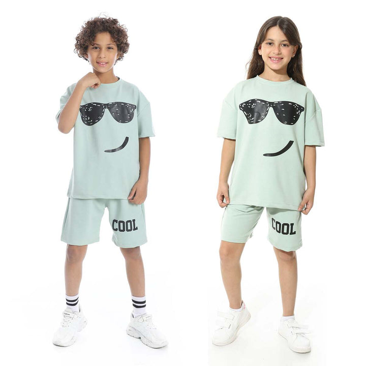 Chic summer children's pajama set with a front print, unisex
