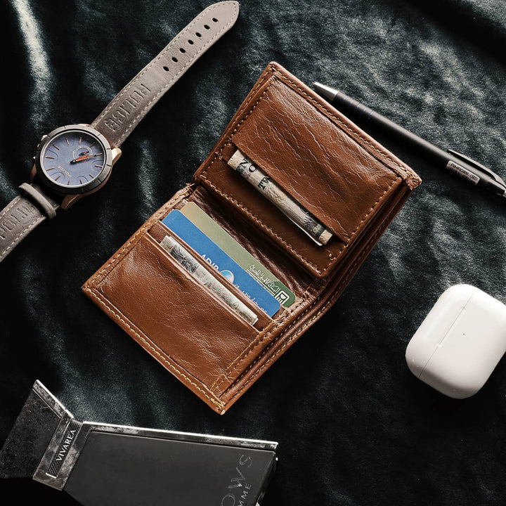 Magic size wallet, genuine cowhide leather, 8 pockets and a magic pocket, W10