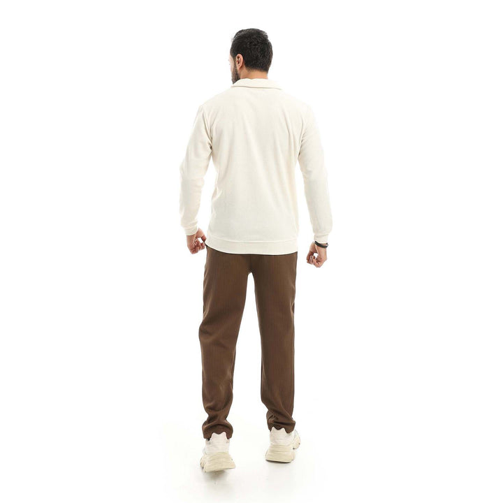 • The off-white color is adorned with distinctive brown details that add an elegant touch.