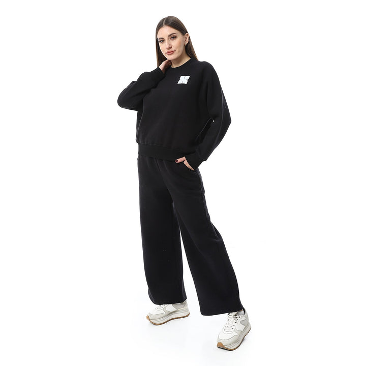 • A comfortable women's set consisting of a hoodie without a hood and wide pants.