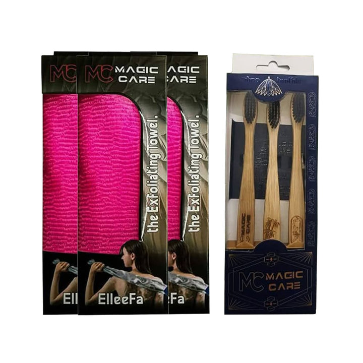 طقم العناية الشاملة – 3 فرش أسنان مع 3 ليف لجسم وفم نظيفين كل يوم
