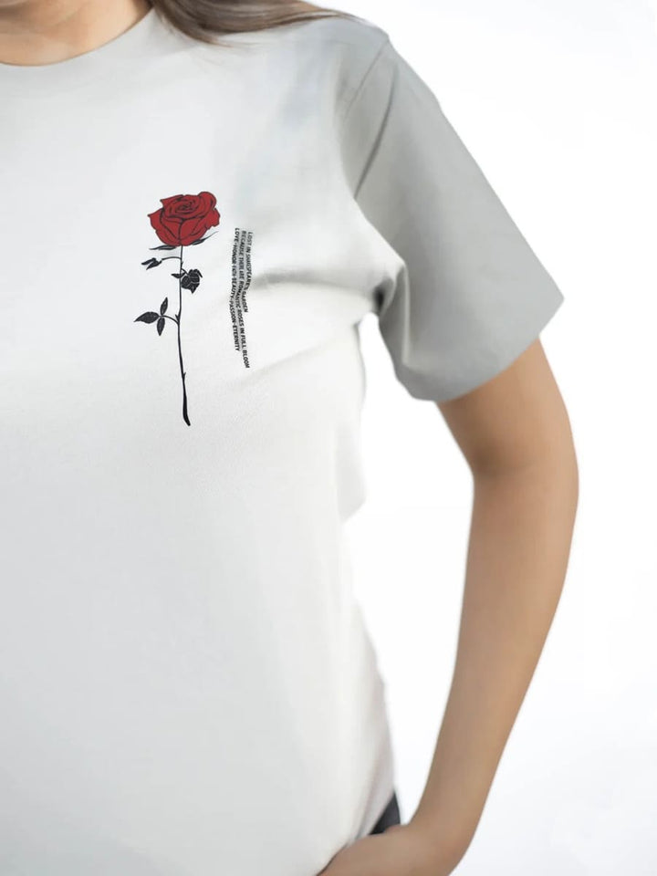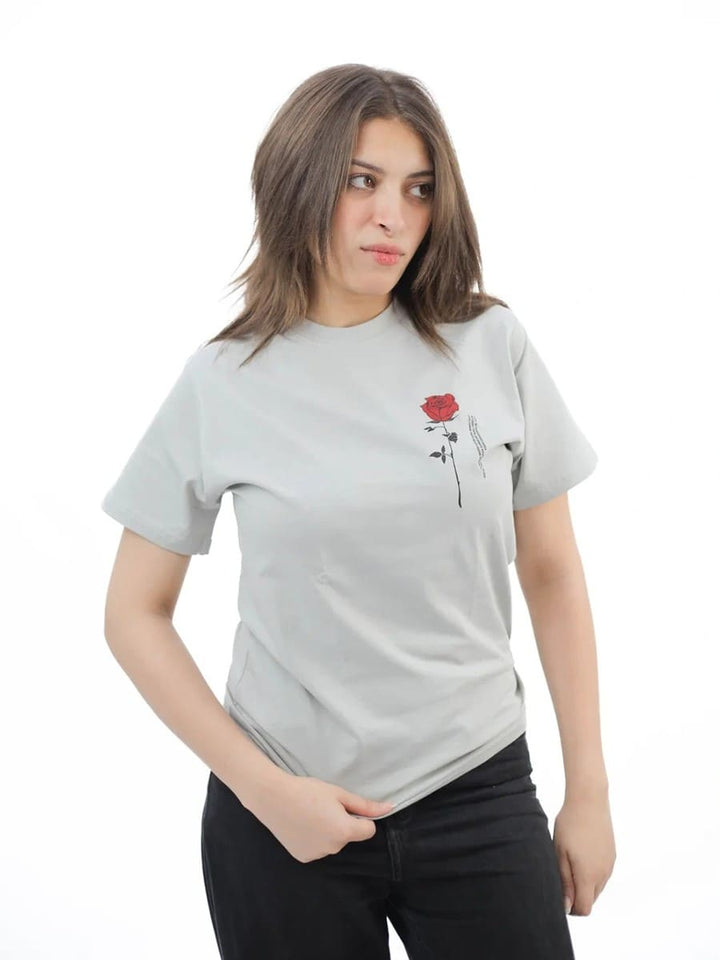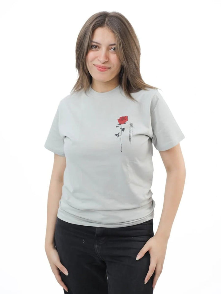 • تيشيرت رمادي حريمي بطبعة وردة .