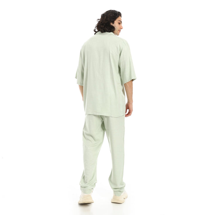 • طقم قميص وبنطال أنيق بتصميم عصري يجمع بين الراحة والمظهر الجذاب، مناسب للإستخدام اليومي أو الخروج الكاجوال.