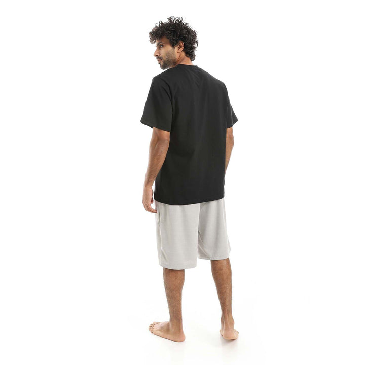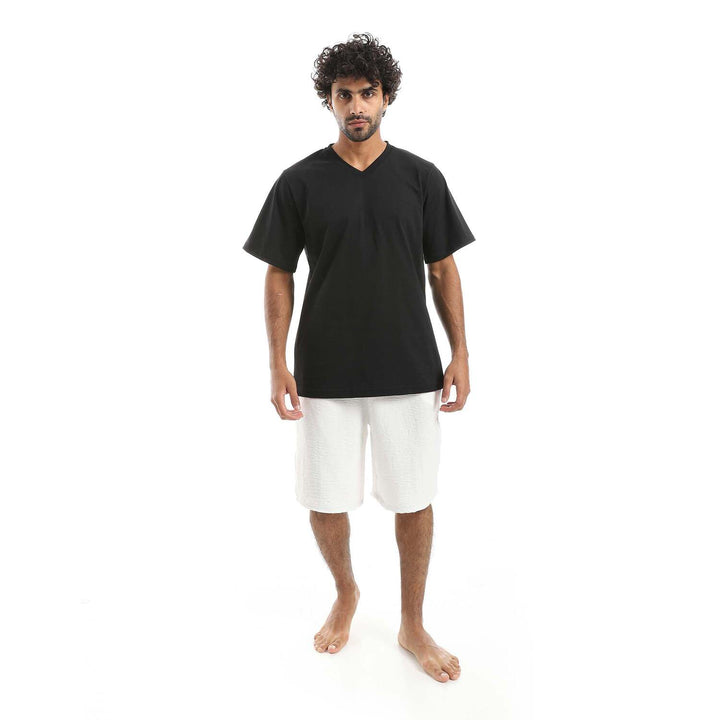 • بيجامة رجالية برقبة على شكل حرف V مع شورت سادة مريح.