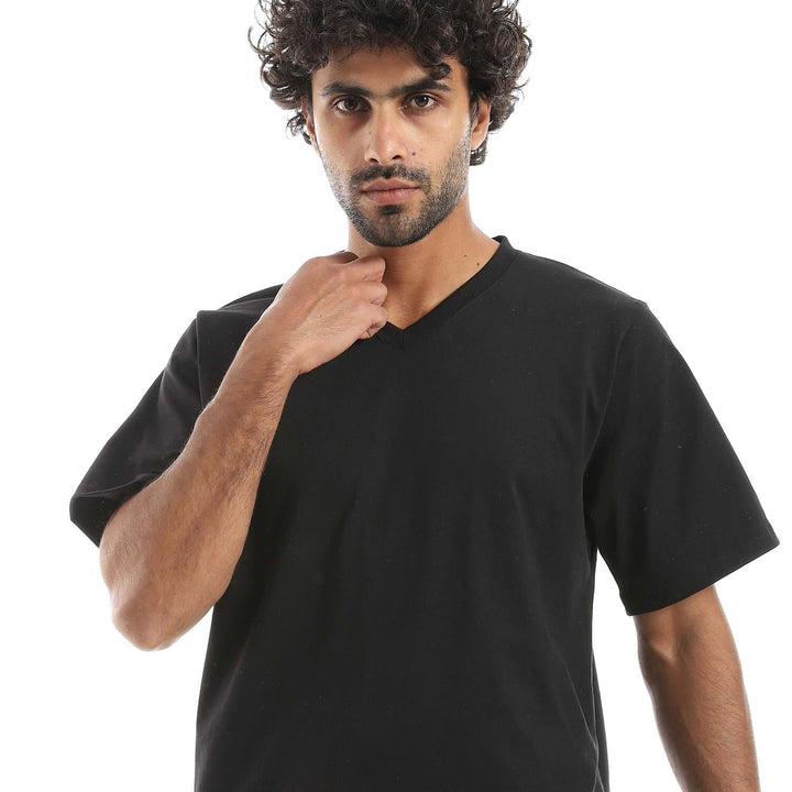 • بيجامة رجالية برقبة على شكل حرف V مع شورت سادة مريح.