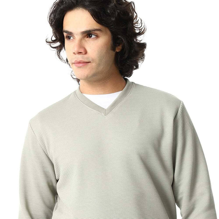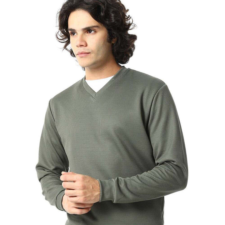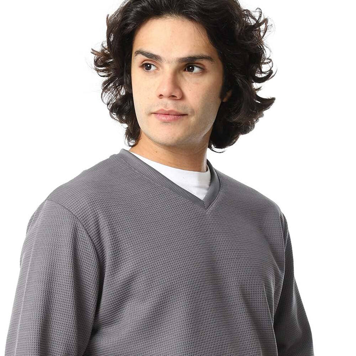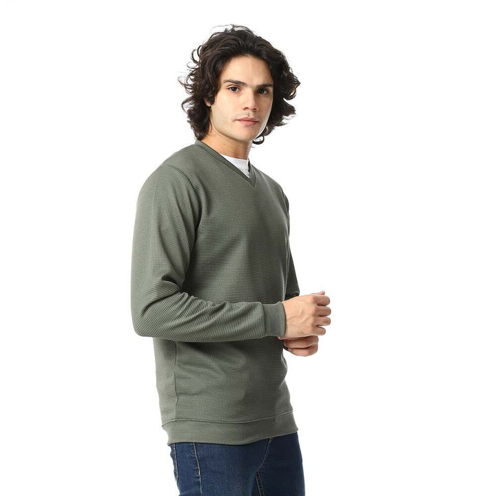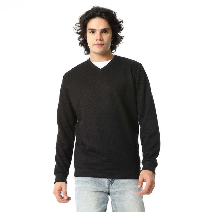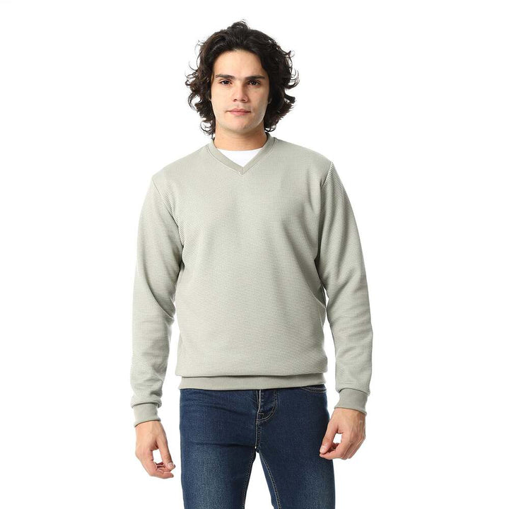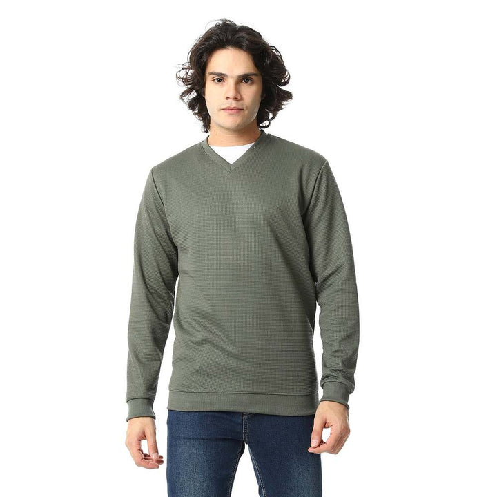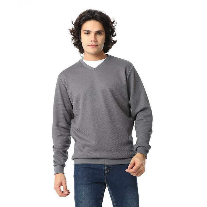 بلوفر شتوي رجالي محبوك برقبة على شكل حرف V قطن 100%