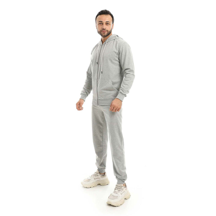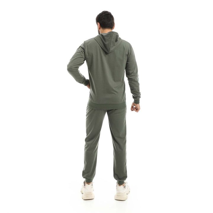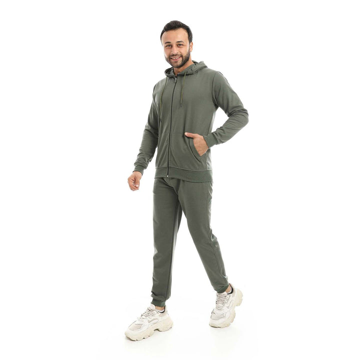 • طقم رجالي مكون من هودي بسحاب وغطاء رأس مع بنطلون عملي.