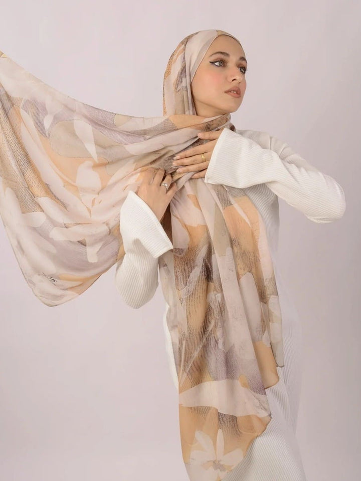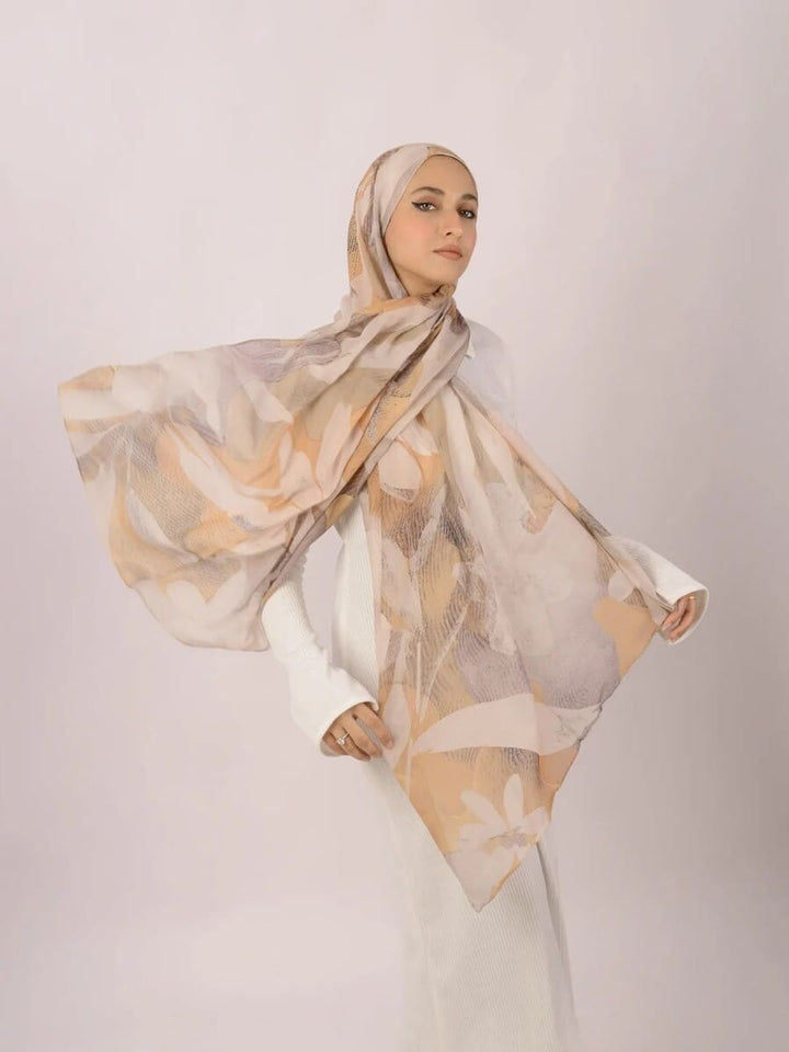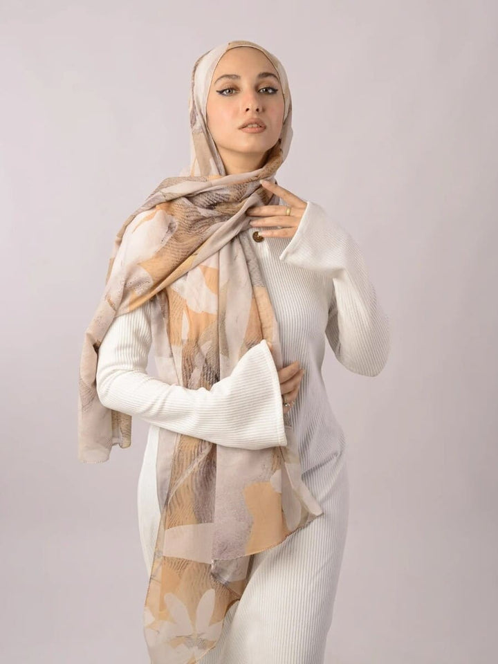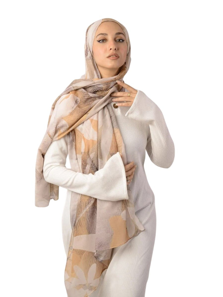 • ايشارب قطن بيج منقوش باللون البرتقالي راحة وأناقة بكل بساطة .