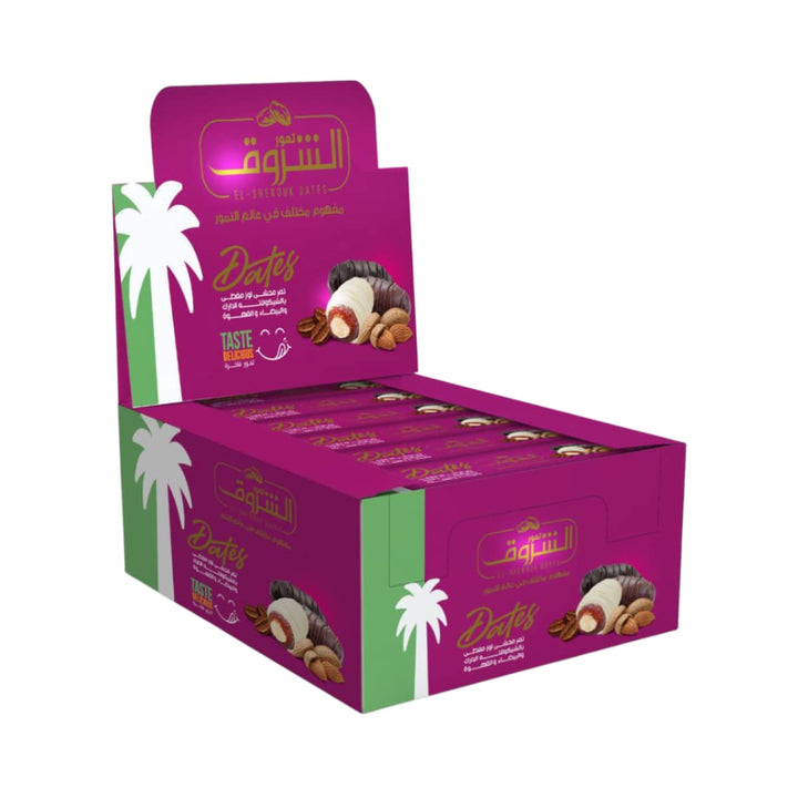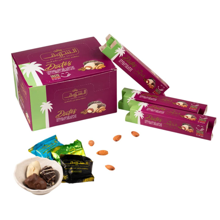 • استمتع بمذاق فاخر يجمع بين حلاوة التمر الطبيعي المميز مع حبات اللوز المقرمشة وحشوات بثلاث نكهات متنوعة.