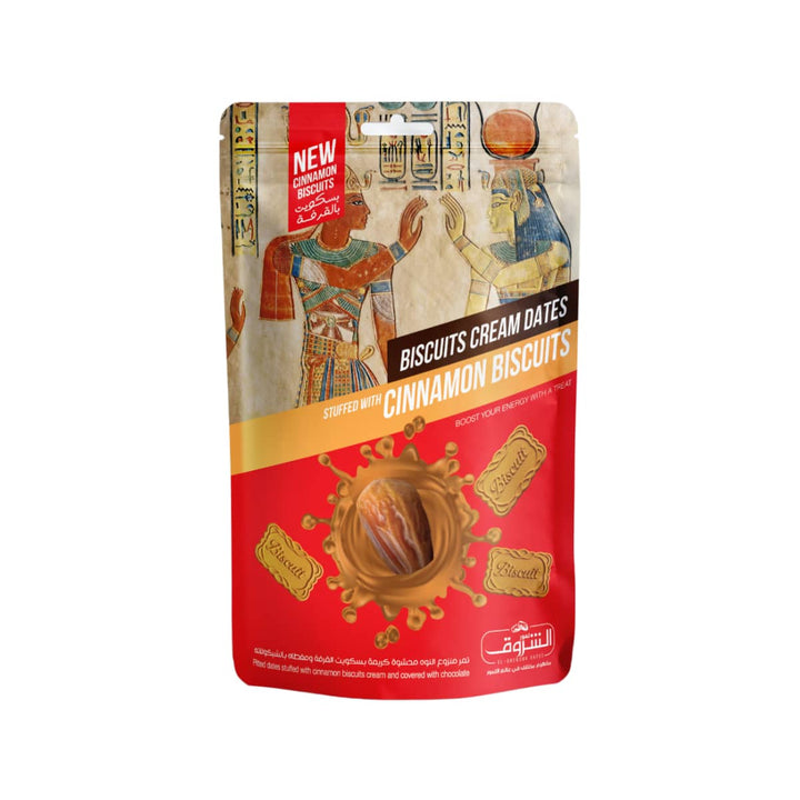 تمر منزوع النوي محشو كريمة بسكويت بالقرفة ومغطي شيكولاتة كريمة