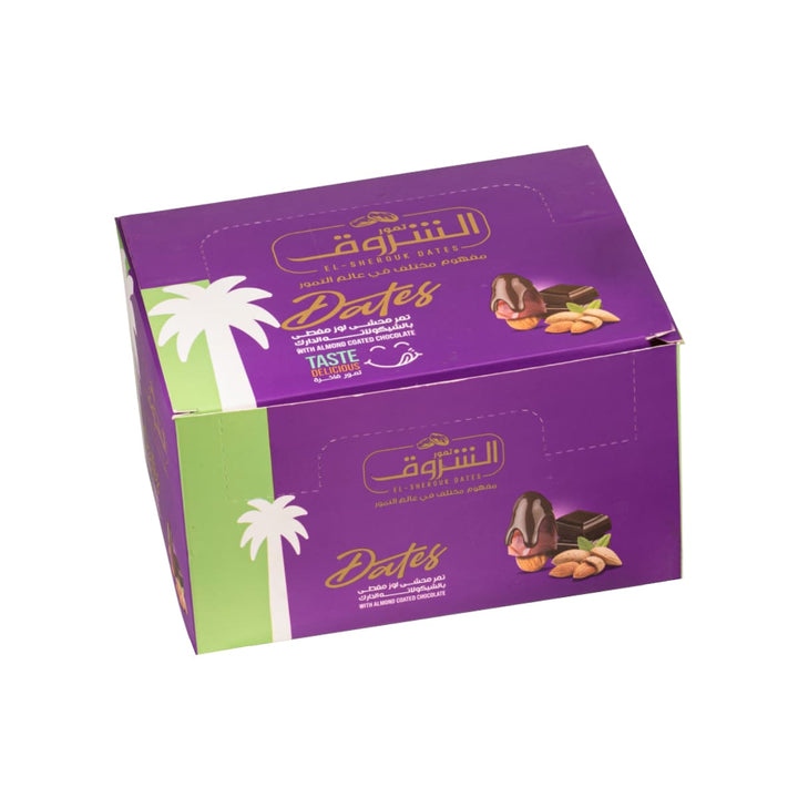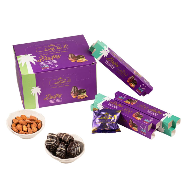 تمر منزوع النوي محشي لوز شيكولاتة دارك 12 عبوة 3 تمرات