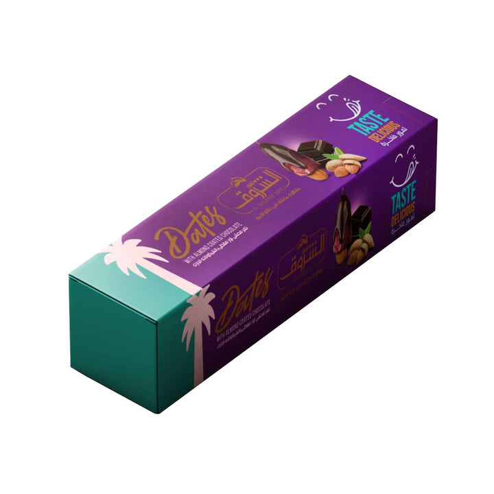 • استمتع بمذاق فاخر يجمع بين حلاوة التمر الطبيعي المميز مع حبات اللوز المقرمشة بنكهة الشيكولاتة الدارك.
