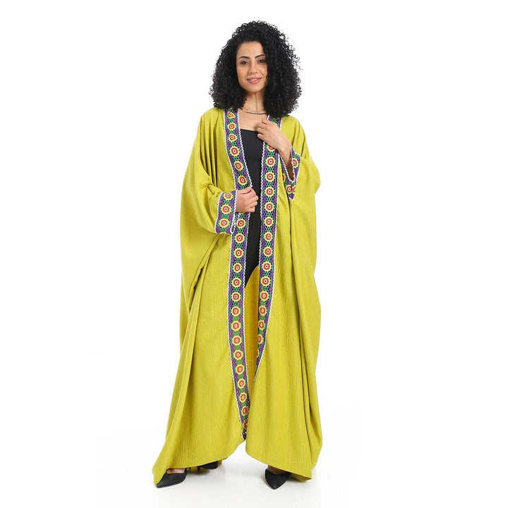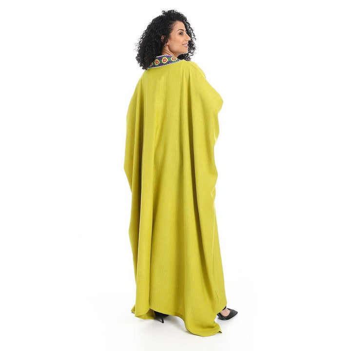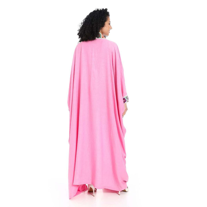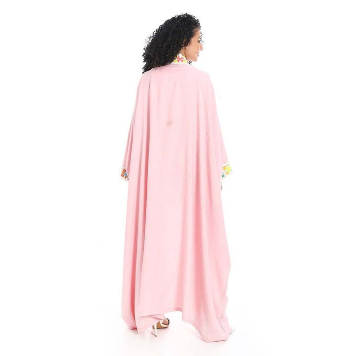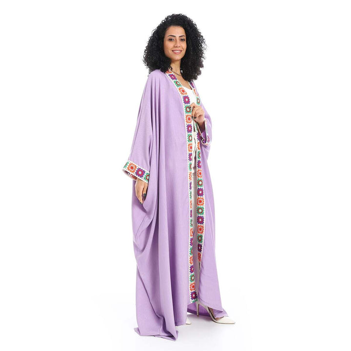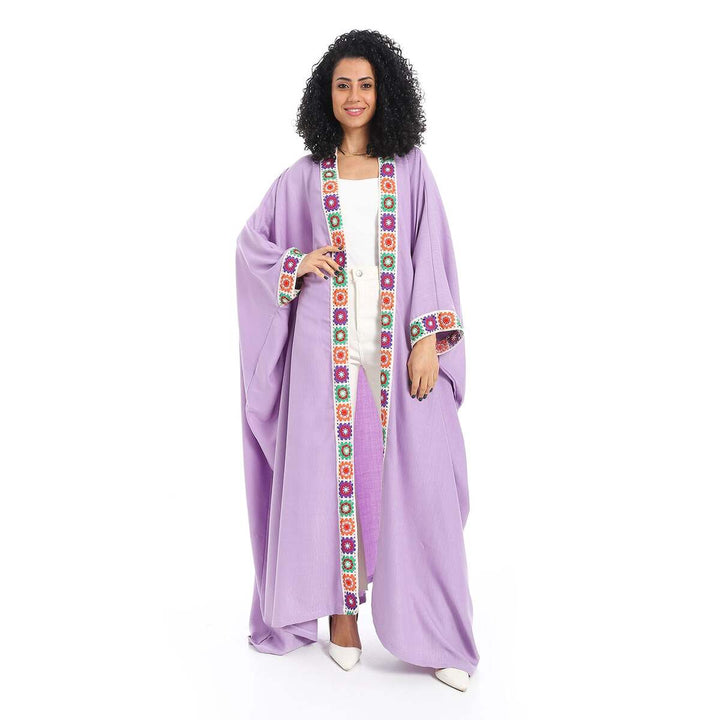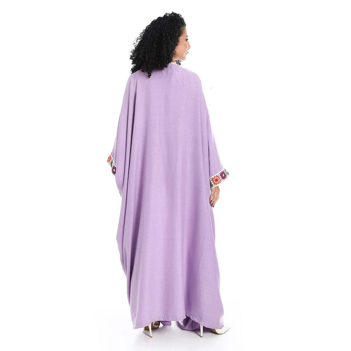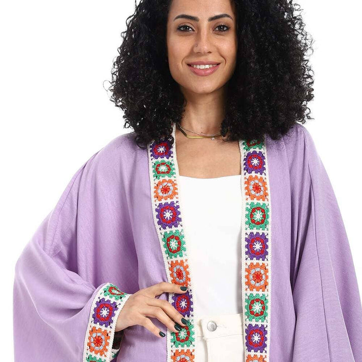 • تمت إضافة نقشة مخيطة بدقة لإضفاء لمسة تميّز على التصميم، بينما تساعد فتحة الرقبة الواسعة على سهولة الإرتداء وتنسيقه مع مختلف القطع.