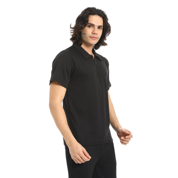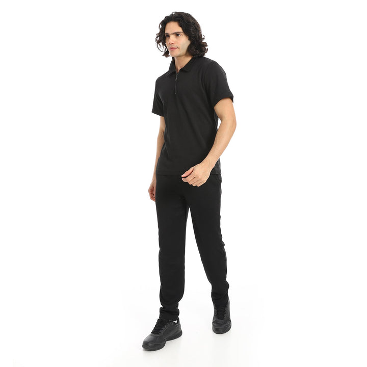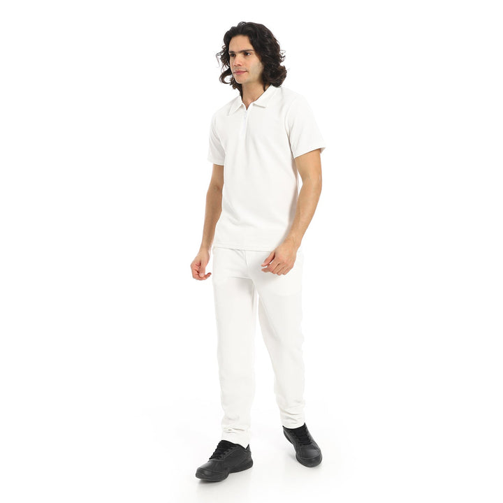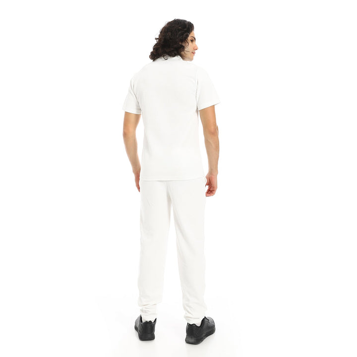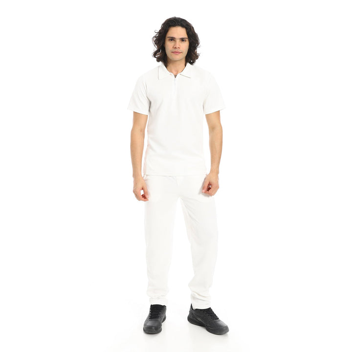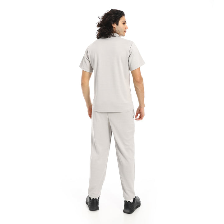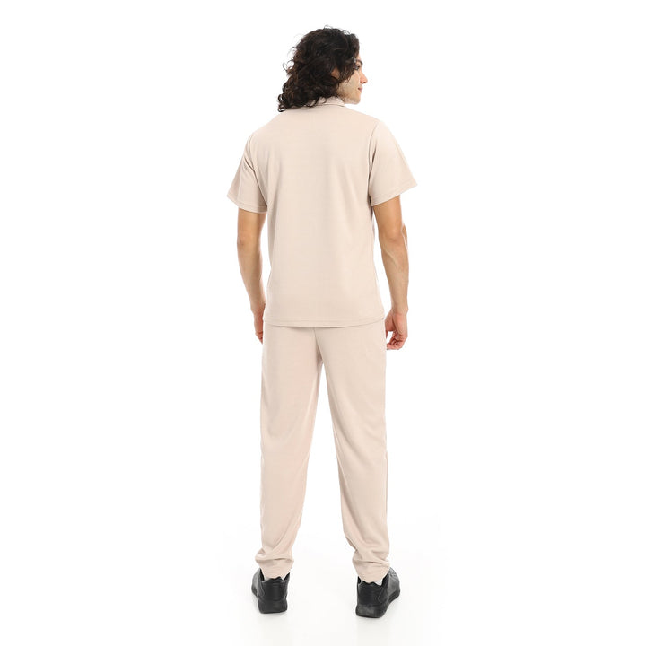 • يتميز التيشيرت بنقشة بيكيه الراقية مع ياقة مطوية وسحاب للإغلاق بأكمام قصيرة، بينما يأتي البنطال بخصر مطاطي يمنحك ثباتًا وراحة في الإرتداء.