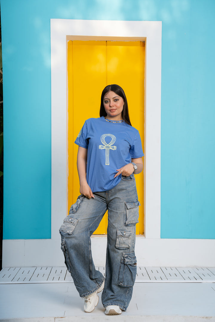 تيشيرت هيروغليفي رسمة مفتاح الحياه حريمي