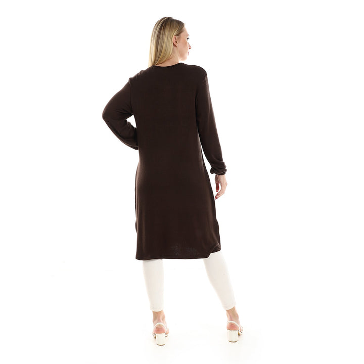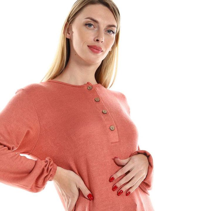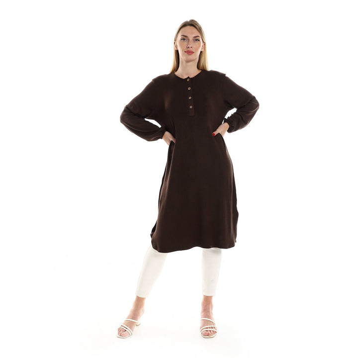 سترة نسائية محبوكة بأكمام طويلة وأزرار